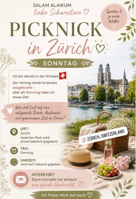 Konspirative Treffen im Park: Die Schatten-Dawa in Zürich Hanna Hansen treibt es auf die Spitze. Nachdem ihre Vorträge offiziell "ausgebucht" sind, weicht sie auf öffentliche Parks in Zürich aus. Doch Transparenz? Fehlanzeige. Der genaue Ort wird nur "privat bekannt gegeben". Das ist kein harmloser Ausflug, das ist konspirative Netzwerkarbeit unter freiem Himmel, direkt vor den Augen der Schweizer Behörden. Wer kontrolliert, was bei diesen "privaten" Treffen wirklich gepredigt wird?