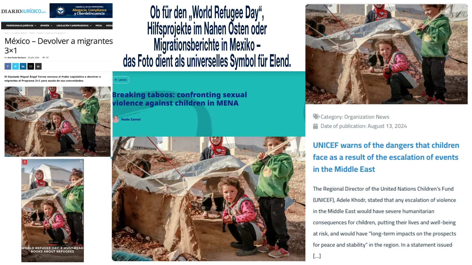 Ob für den „World Refugee Day“, Hilfsprojekte im Nahen Osten oder Migrationsberichte in Mexiko – das Foto dient als universelles Symbol für Elend. Dass Stadtlander es als aktuelles Dokument ihrer „Arbeit in Marokko“ verkauft, entlarvt die Kampagne als rein dekoratives Konstrukt. Es existiert kein Beleg dafür, dass die gezeigten Personen jemals in Kontakt mit der „Helfenden Hand“ standen.
