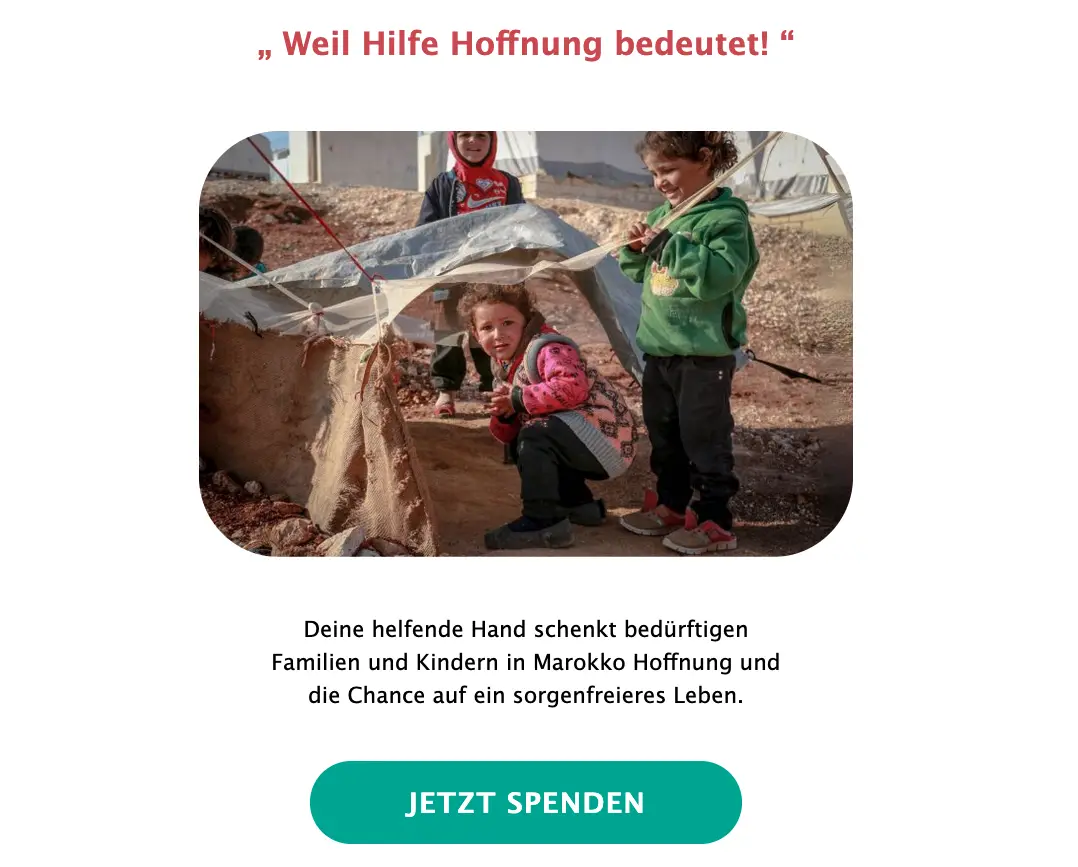Das zentrale Motiv, mit dem Victoria Stadtlander aktuell um Spenden für Erdbebenopfer wirbt – drei Kinder, die Schutz unter einer Plastikplane suchen – ist eine bewusste Irreführung. Unsere Recherche zeigt: Dieses Bild ist ein uraltes Stockfoto. Es kursierte bereits im Juni 2023 im Internet (u. a. bei ETimes), also Monate vor dem schweren Erdbeben in Marokko im September 2023.