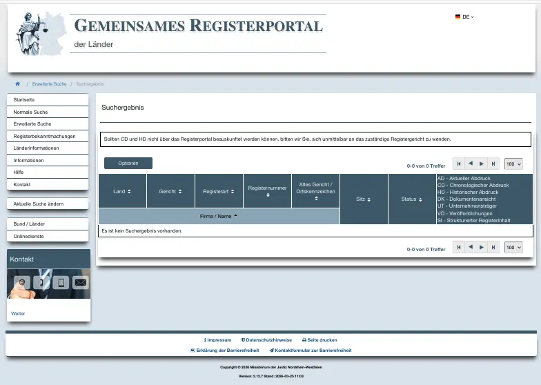 - Befund: Negativ-Auskunft des Registerportals für die Nummer VR 201741.
